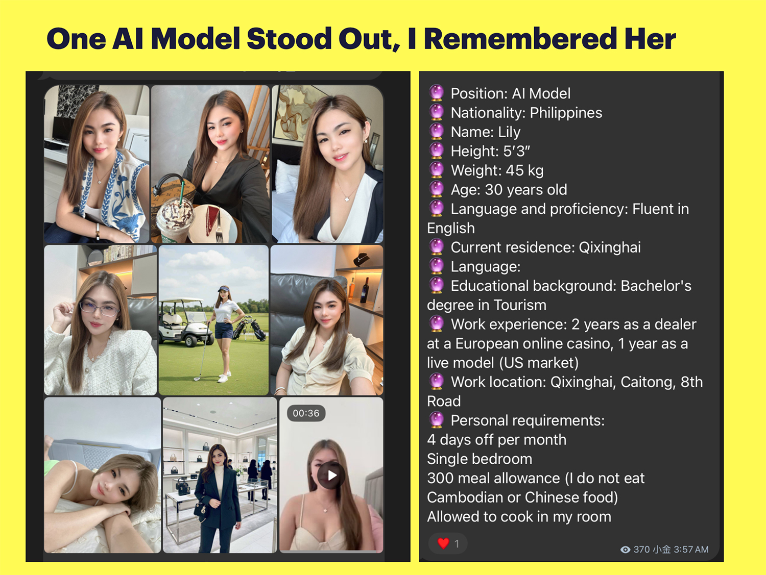 Two months ago, the AI model called herself “Remina” and she worked in a scam compound that I traced back to Cambodia.